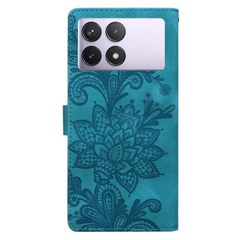 Θήκη τηλεφώνου από PU με μαγνητικό κούμπωμα και δαντέλα με λουλουδάτο ανάγλυφο για Redmi K70E / Poco X6 Pro με λουρί καρπού (Πράσινο)