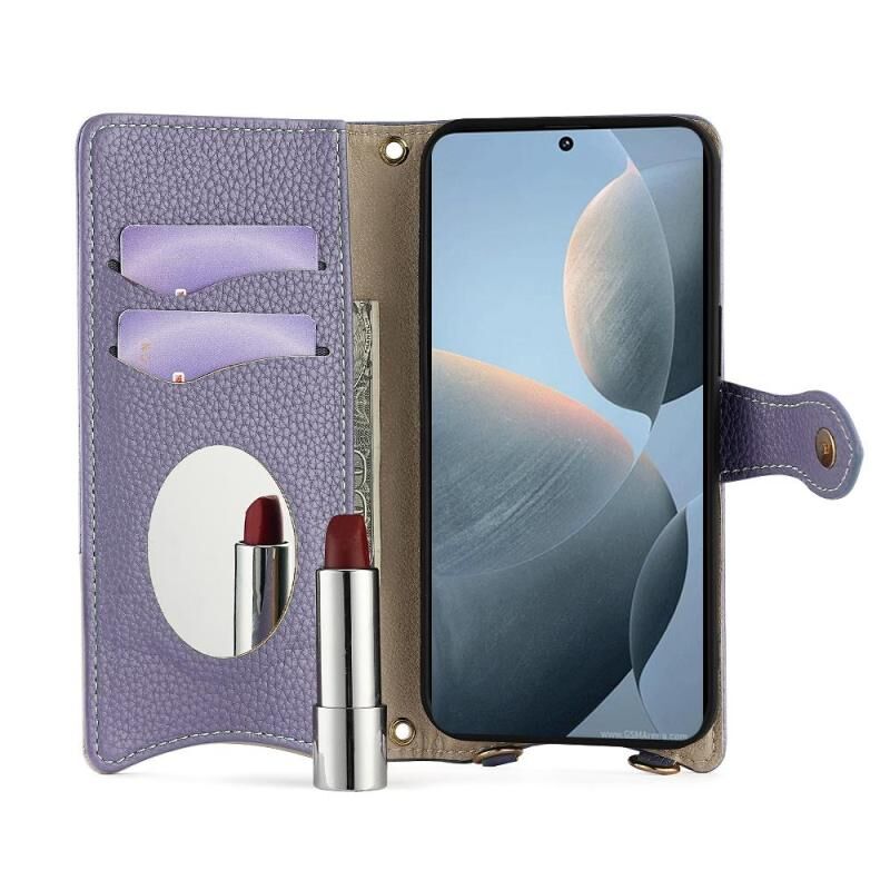 7. Ενσωματωμένος οβάλ καθρέφτης μακιγιάζ από ανοξείδωτο χάλυβα: Ένας ανθεκτικός, ανθεκτικός στις γρατσουνιές οβάλ καθρέφτης στο εσωτερικό της θήκης του τηλεφώνου για εύκολο φρεσκάρισμα του μακιγιάζ εν κινήσει.