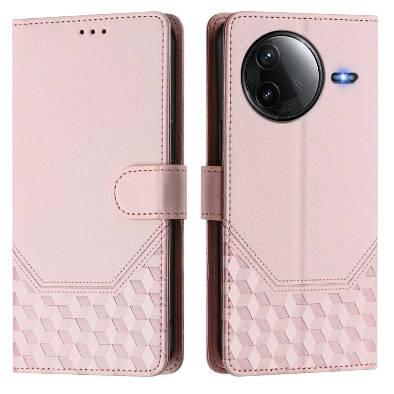 Για Redmi K80 5G / K80 Pro 5G Honeycomb ανάγλυφη RFID δερμάτινη θήκη τηλεφώνου (ροζ)