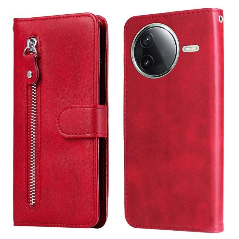 For Redmi K80 Fashion Calf Texture Zipper Leather Phone Case(Red)