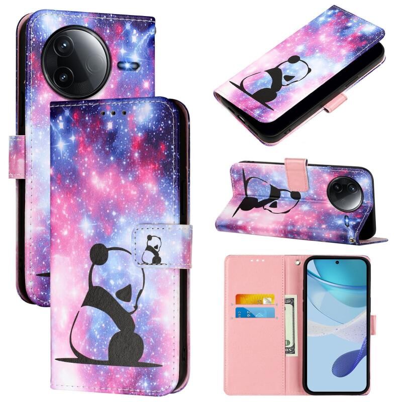 Θήκη τηλεφώνου από δέρμα με απλή ύφανση και πολύχρωμο σχέδιο (Baby Panda) για Redmi K80 / K80 Pro.
