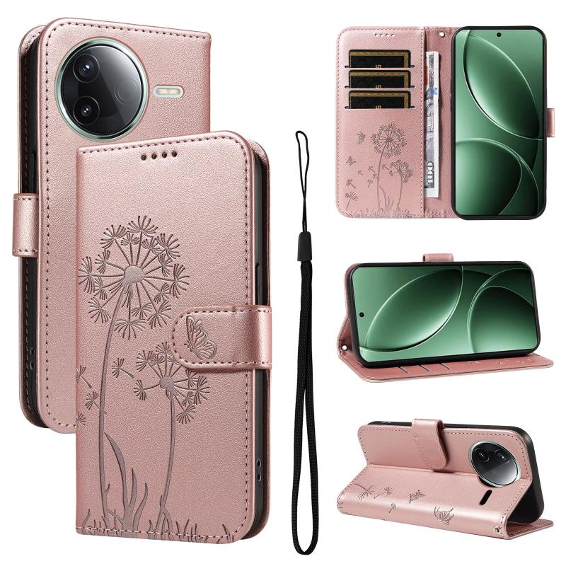 For Redmi K80 / K80 Pro Dandelion Embossed Pattern Flip Leather Phone Case(Rose Gold)
