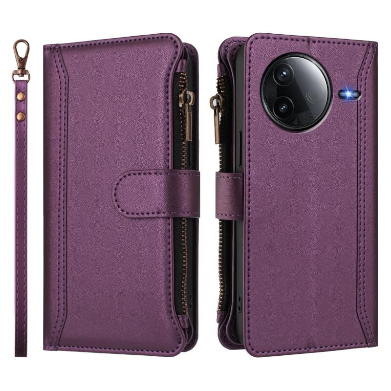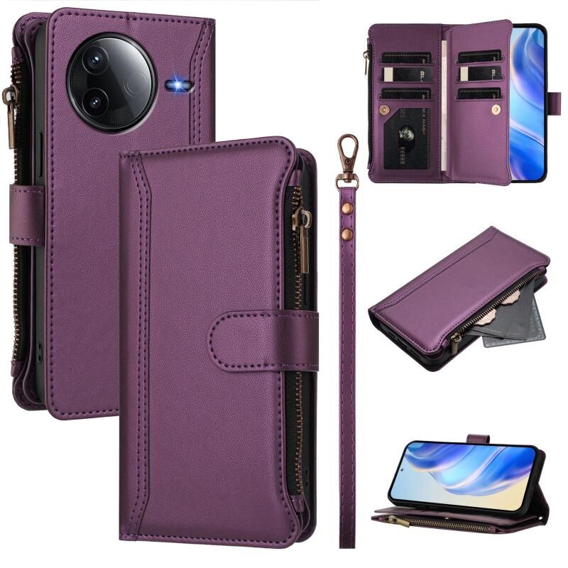 For Redmi K80 / K80 Pro Magnetic Closure 9 Card Slots Zipper Leather Case with Hand Strap(Purple)