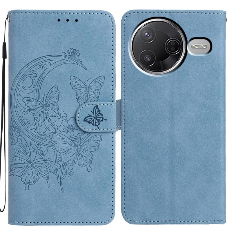 For Redmi K80 / K80 Pro Moonlit Butterfly Dance Pattern Embossed Leather Phone Case(Blue)