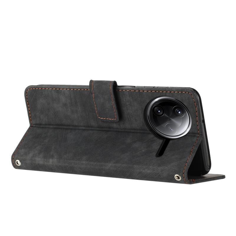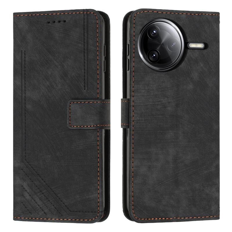 For Redmi K80 / K80 Pro Skin Feel Stripe Pattern Leather Phone Case with Long Lanyard(Black)