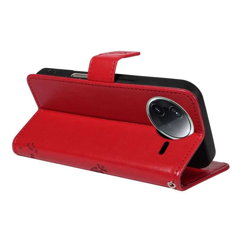 For Redmi K80 / K80 Pro Tree & Cat Embossed Pattern Flip Leather Phone Case(Red)