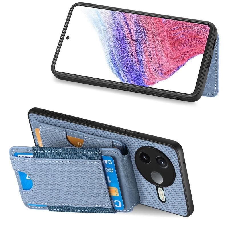 For Redmi K80 / Poco F7 Pro Carbon Fiber Vertical Flip Wallet Stand Phone Case(Blue)