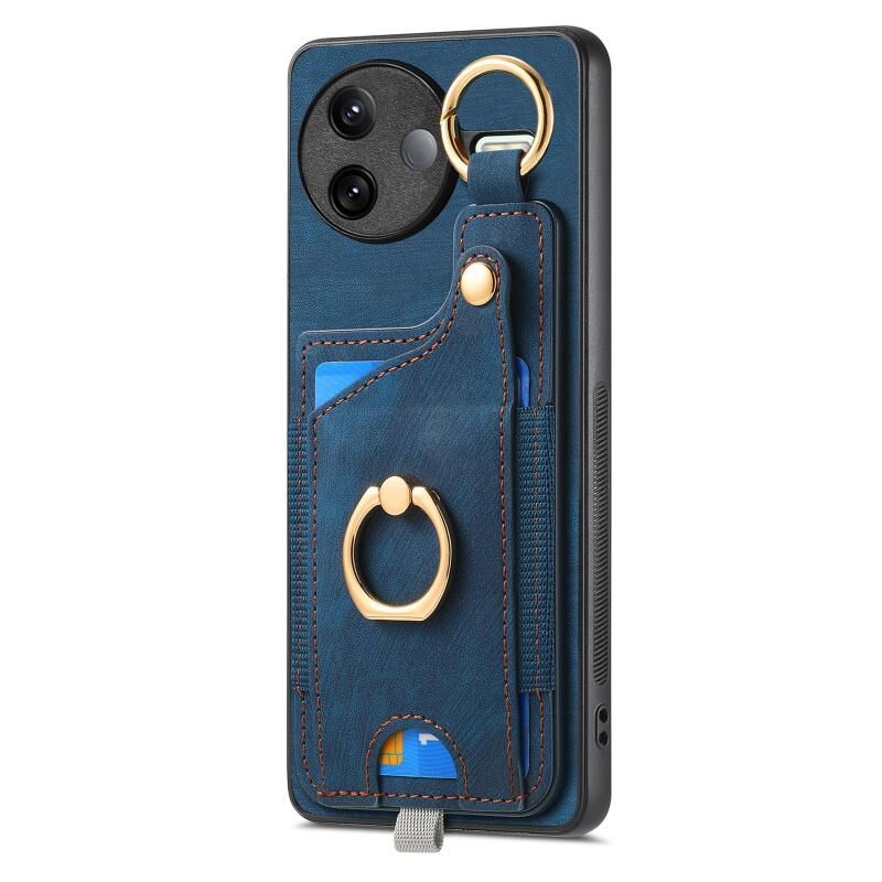 Θήκη τηλεφώνου με δακτύλιο και κάρτες, με ρετρό αίσθηση για Redmi K80 / Poco F7 Pro με θηλιά για κρέμασμα (Ροζ)