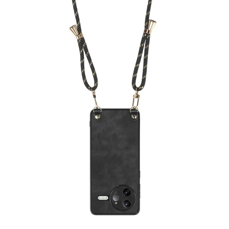 For Redmi K80 / Poco F7 Pro Vintage Leather PC Back Cover Phone Case with Crossbody Strap(Black)