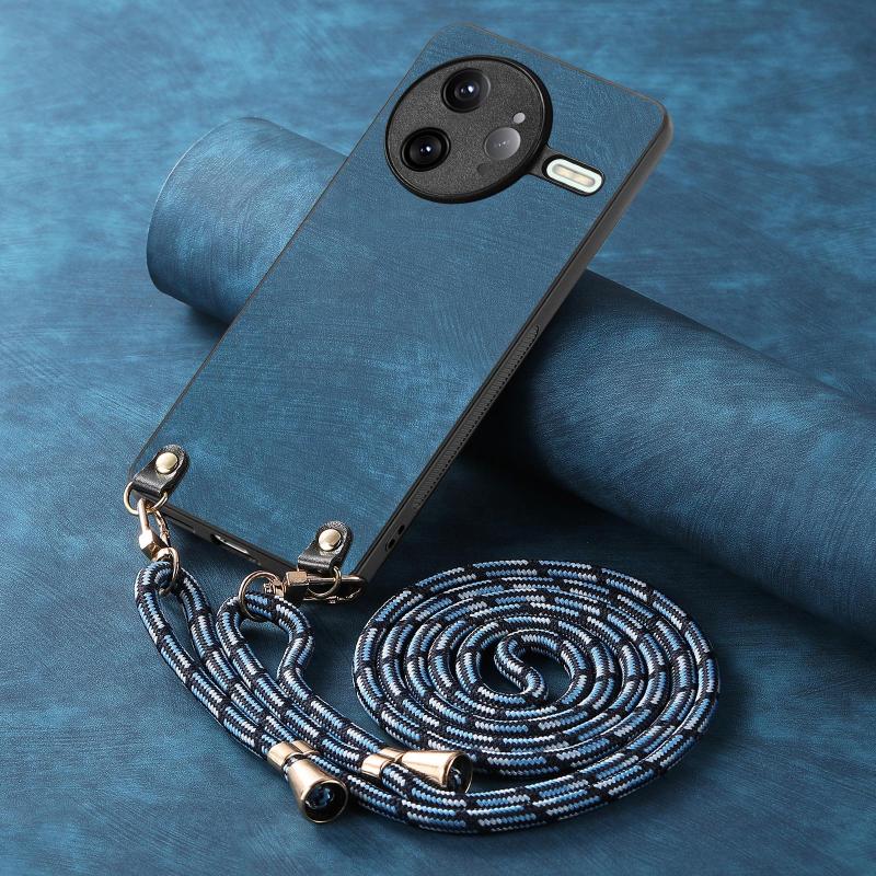 For Redmi K80 / Poco F7 Pro Vintage Leather PC Back Cover Phone Case with Crossbody Strap(Blue)