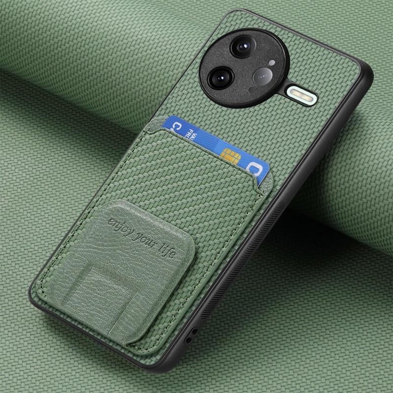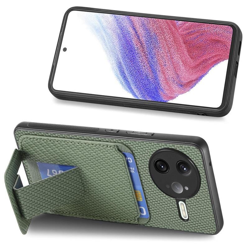 Θήκη τηλεφώνου από ανθρακονήματα με κάρτες και βάση στήριξης για Redmi K80 Pro / Poco F7 Ultra (Μπλε)