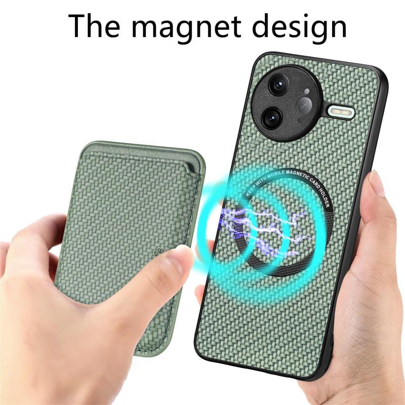 For Redmi K80 Pro / Poco F7 Ultra Carbon Fiber Leather Card Magnetic Phone Case(Green)