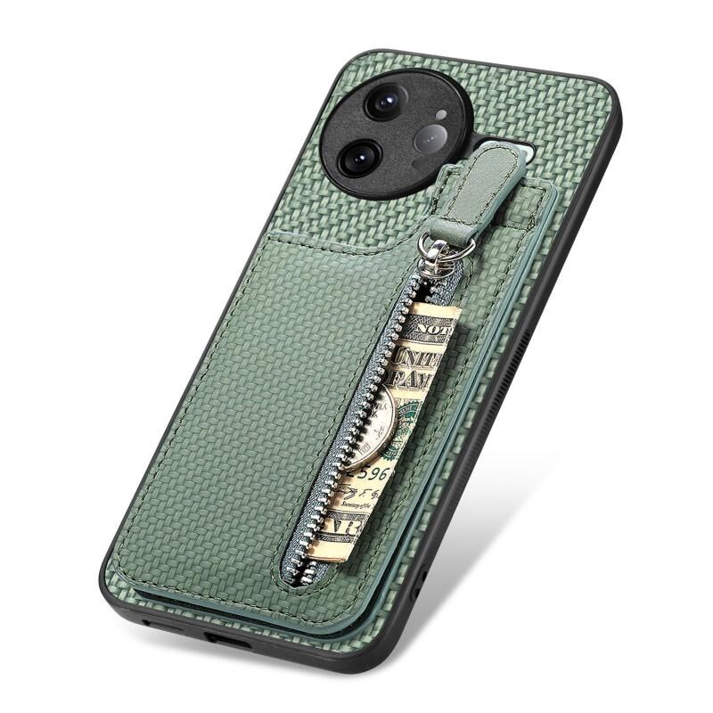 Θήκη τηλεφώνου κάθετης αναδίπλωσης με φερμουάρ από ανθρακονήματα για Redmi K80 Pro / Poco F7 Ultra (Μαύρο)