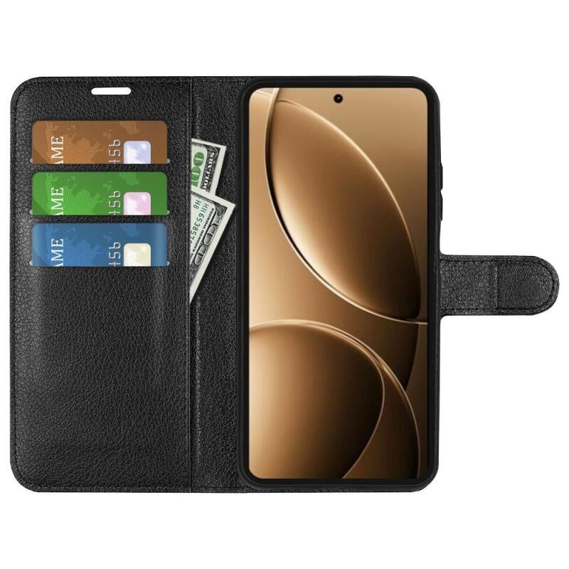 Θήκη τηλεφώνου από δέρμα με οριζόντιο άνοιγμα και υφή λitchi για Redmi K80 Pro / Poco F7 Ultra με βάση στήριξης (Μαύρο)