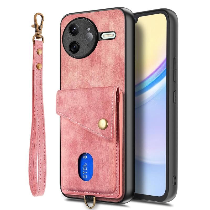 Θήκη τηλεφώνου από δέρμα με αναδιπλούμενο σχέδιο και κάρτες, με λουρί για Redmi K80 Pro / Poco F7 Ultra (Μαύρο)