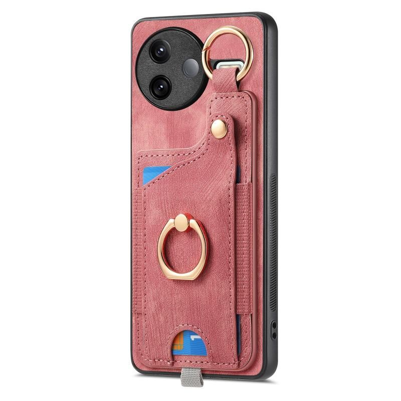 Θήκη τηλεφώνου με δακτύλιο και κάρτες, υφή retro για Redmi K80 Pro / Poco F7 Ultra με θηλιά για κρέμασμα (Ροζ)