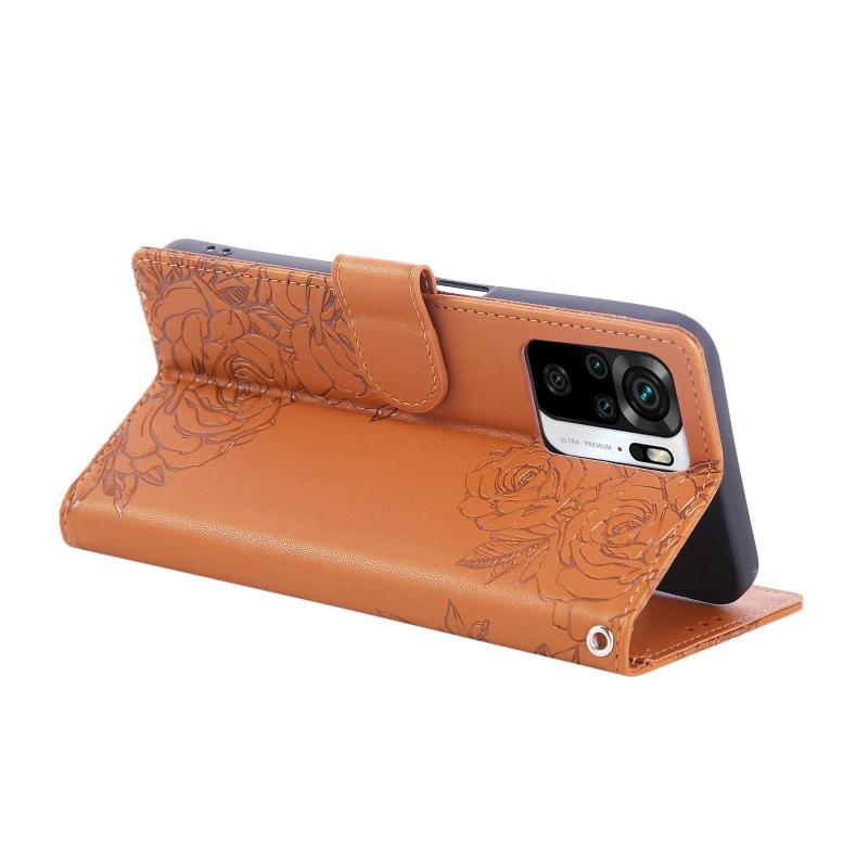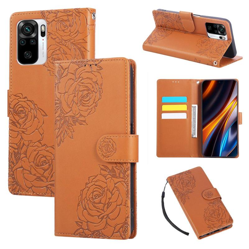 For Redmi Note 10 4G / 10S Global Rose Flower Embossed 3-Card Slots Leather Phone Case(Brown)