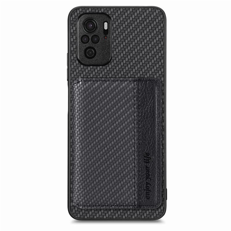 Για Redmi Σημείωση 10 4G Carbon Fiber μαγνητική κάρτα τσάντα υπόθεση τηλεφώνου (μαύρο)