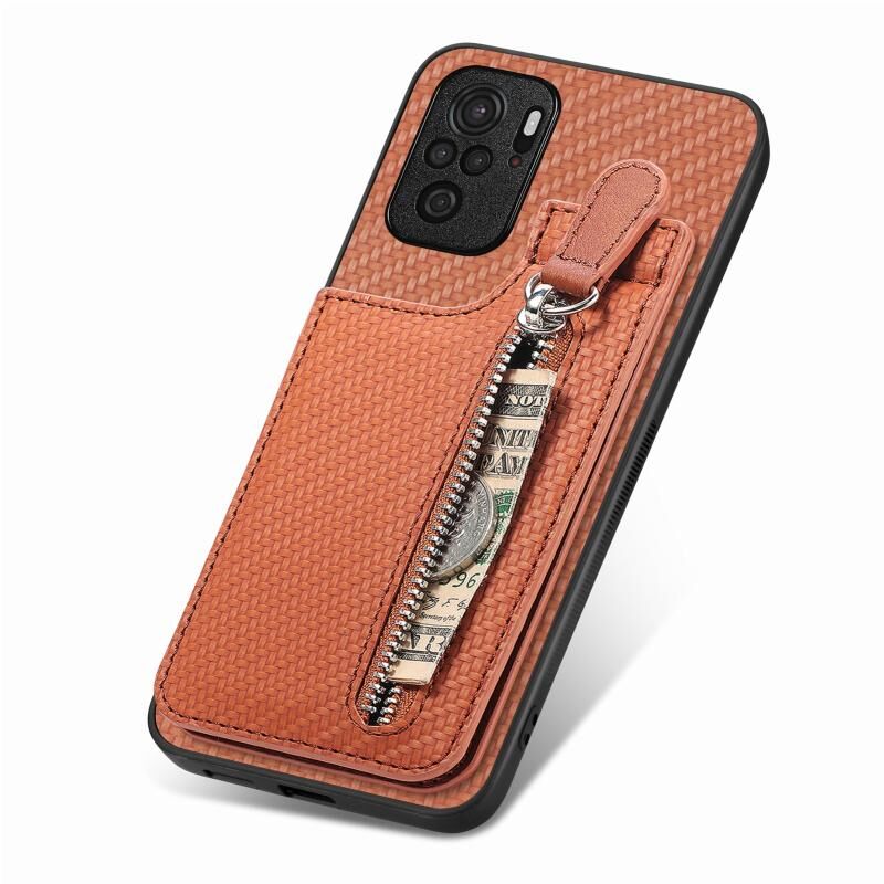 Για Redmi Σημείωση 10 4G Carbon Fiber Κάθετη Flip φερμουάρ τηλέφωνο υπόθεση (καφέ)