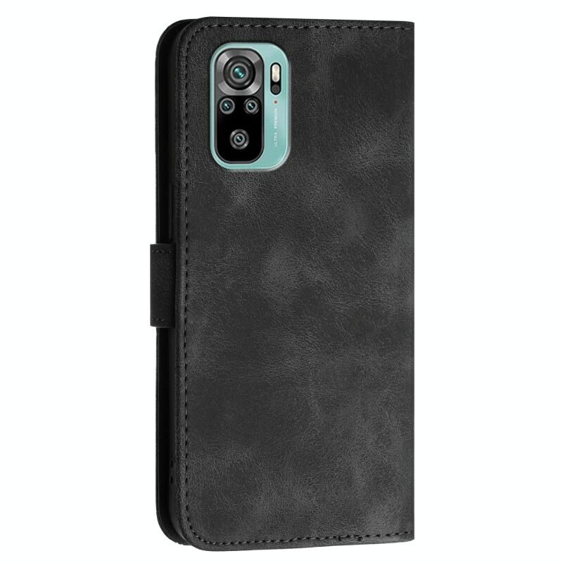 Για Redmi Note 10 4G Global YX0080 Θήκη τηλεφώνου από δέρμα με ανάγλυφο σχέδιο πλέγματος και πεταλούδας με κορδόνι (Μαύρο)