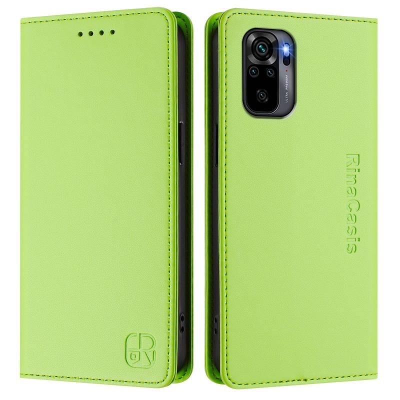 Για Redmi Note 10 4G / Note 10S 4G RC01 Διπλωτή Μαγνητική Θήκη Δέρματος RFID (Πράσινο του γρασιδιού)