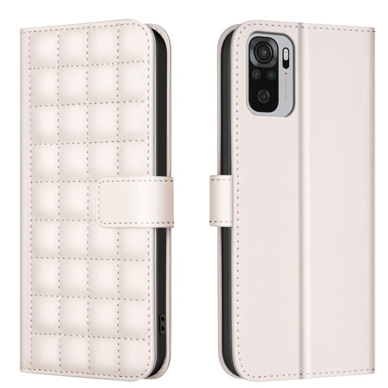 Θήκη δερμάτινη με τετράγωνο σχέδιο για Redmi Note 10 4G / Note 10S (Μπεζ)