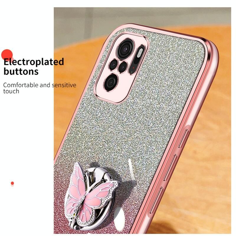 Για Redmi Σημείωση 10 4G επιμεταλλωμένο διαβάθμιση Glitter πεταλούδα κάτοχος TPU τηλέφωνο υπόθεση (Μωβ)