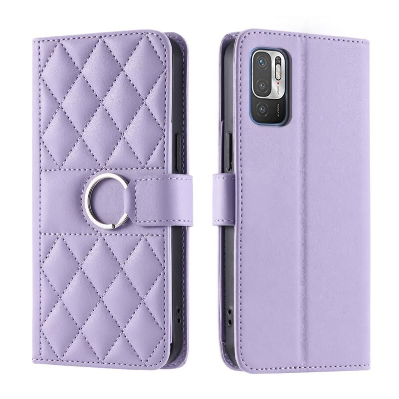Για Redmi Σημείωση 10 5G / 10T 5G δαχτυλίδι πόρπη Rhombic δέρμα τηλέφωνο υπόθεση (μωβ)