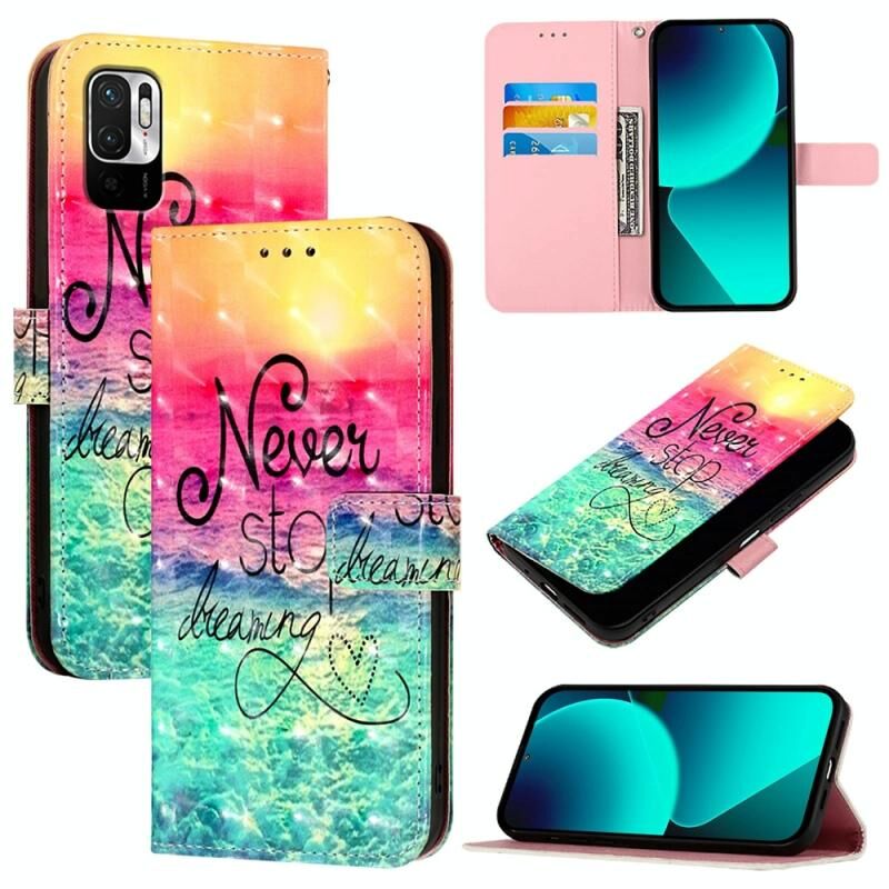 Θήκη τηλεφώνου από δέρμα με οριζόντιο άνοιγμα και τρισδιάστατη ζωγραφική για Redmi Note 10 5G / Note 10T 5G (Κυνηγώντας Όνειρα)