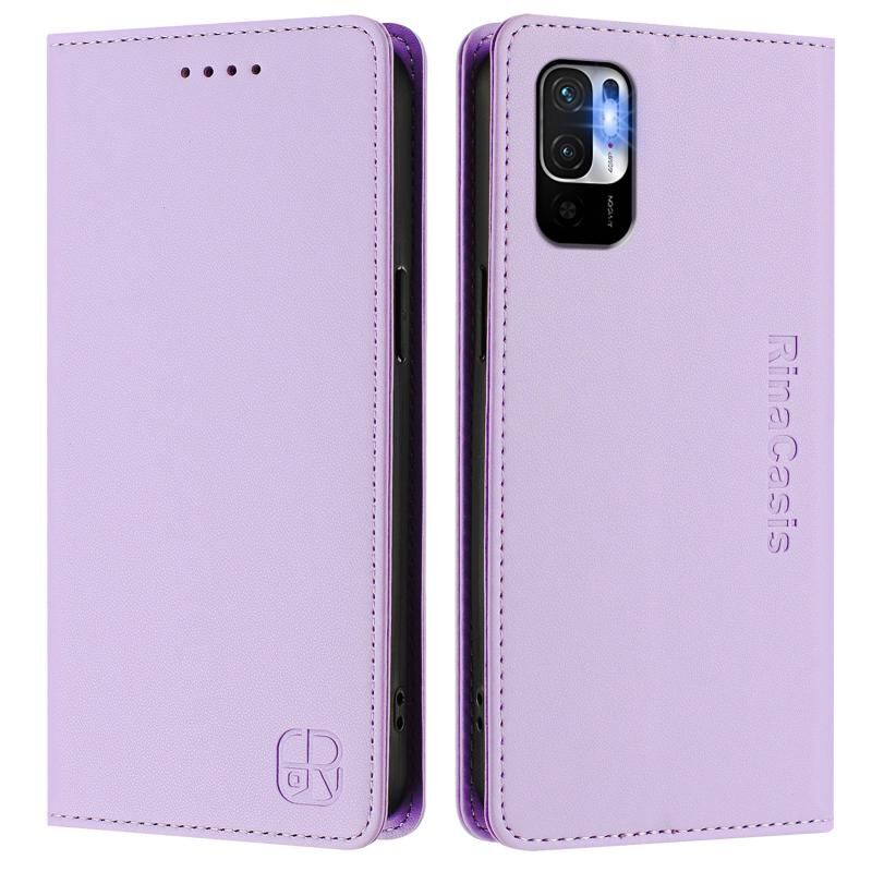 Θήκη τηλεφώνου από δέρμα με μαγνητική απορρόφηση και διπλή πτύχωση για Redmi Note 10 5G / Note 10T 5G RC01 (ανοιχτό μωβ)