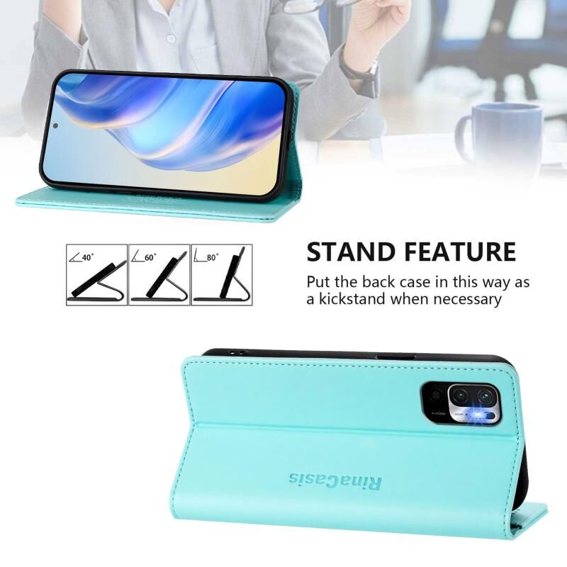 Θήκη τηλεφώνου από δέρμα με μαγνητική απορρόφηση και διπλή πτύχωση για Redmi Note 10 5G / Note 10T 5G RC01 (Μέντας πράσινο)