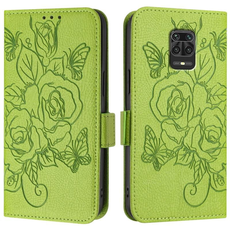 Για Redmi Note 10 Lite / Xiaomi Poco M2 Pro ανάγλυφο Rose RFID αντικλεπτική δερμάτινη θήκη τηλεφώνου (πράσινο)