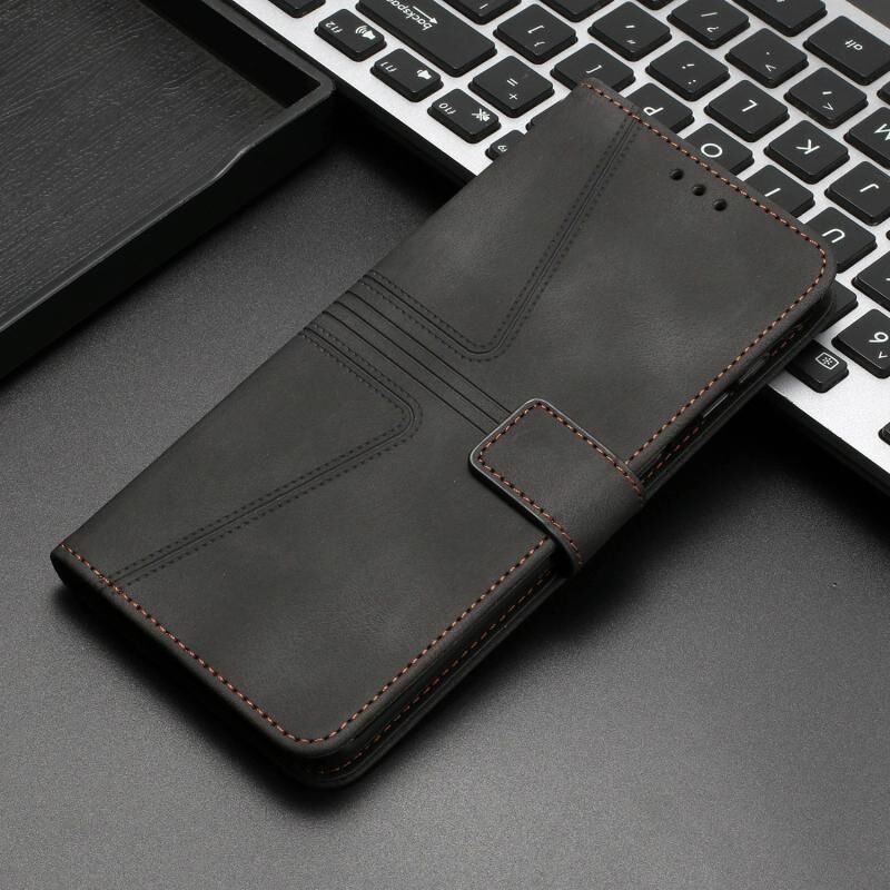 Για Redmi Σημείωση 10 / Σημείωση 10S 4G τρίγωνο στερεό χρώμα δερμάτινη θήκη τηλεφώνου (μαύρο)