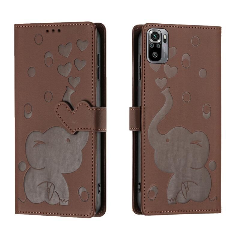 Θήκη τηλεφώνου από δέρμα με ανάγλυφο σχέδιο καρτούν ελέφαντα για Redmi Note 10 / Note 10S (Μπλε)