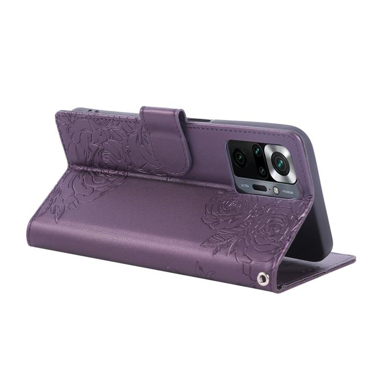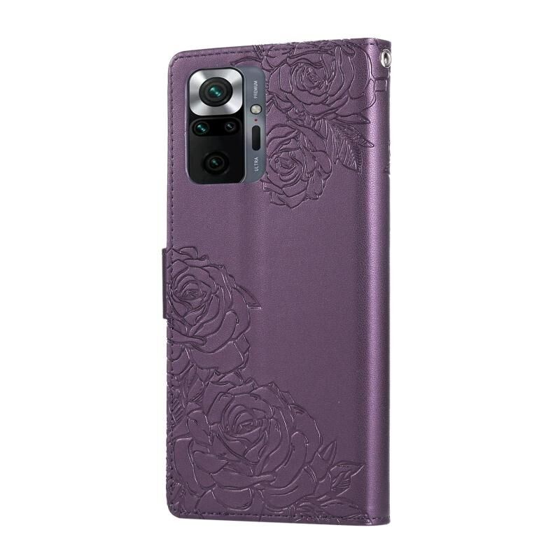 For Redmi Note 10 Pro / 10 Pro Max Rose Flower Embossed 3-Card Slots Leather Phone Case(Deep Purple)
