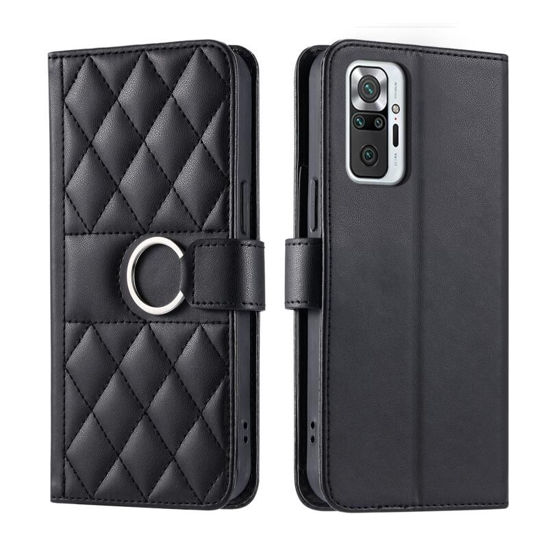 Για Redmi Σημείωση 10 Pro 4G Παγκόσμια δαχτυλίδι πόρπη Rhombic δερμάτινη θήκη τηλεφώνου (μαύρο)