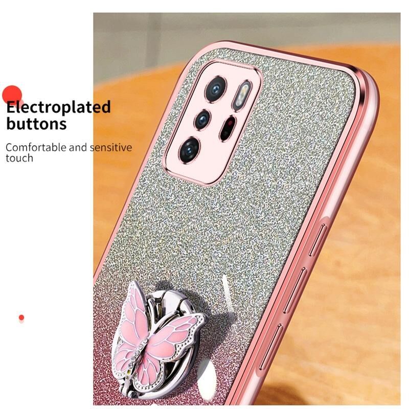 Για Redmi Σημείωση 10 Pro 5G επιμεταλλωμένο διαβάθμιση Glitter πεταλούδα κάτοχος TPU τηλέφωνο υπόθεση (μωβ)