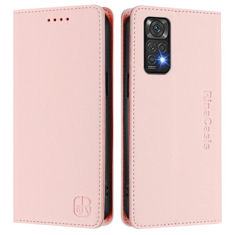 Για Redmi Note 11 / 11S / 12S 4G Global RC01 Διπλωτή Μαγνητική Θήκη Δέρματος RFID (ρόζ)
