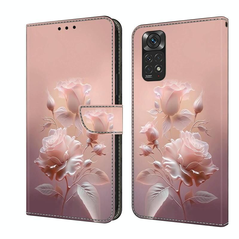 Θήκη τηλεφώνου από φρέσκο βαμμένο δέρμα για Redmi Note 11 / 11S (Κεραμικά Λουλούδια)