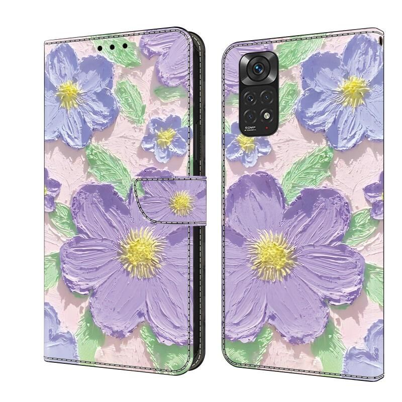 Θήκη τηλεφώνου από δέρμα με φρέσκο βάψιμο για Redmi Note 11 / 11S (Μωβ λουλούδια ζωγραφισμένα με λάδι)