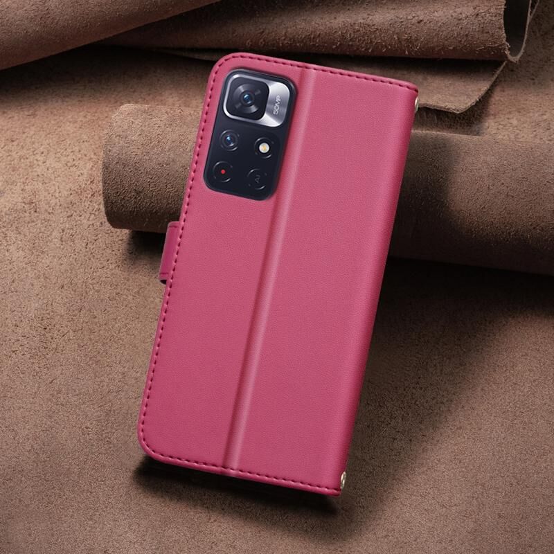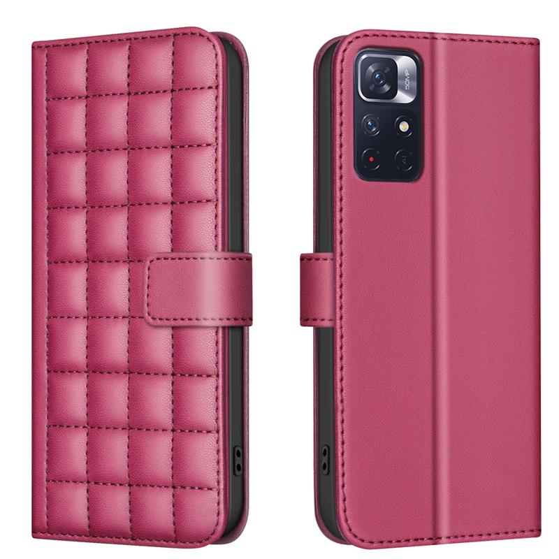 Θήκη δερμάτινη με τετράγωνο σχέδιο για Redmi Note 11 / Note 11S (Κόκκινο)