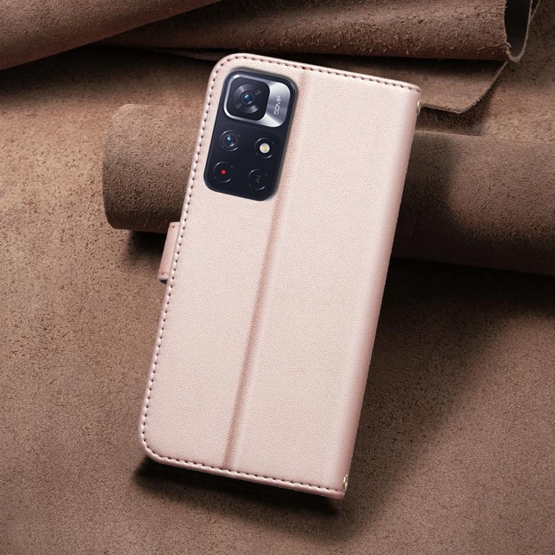 Θήκη δερμάτινη με τετράγωνο σχέδιο για Redmi Note 11 / Note 11S (Ροζ Χρυσό)