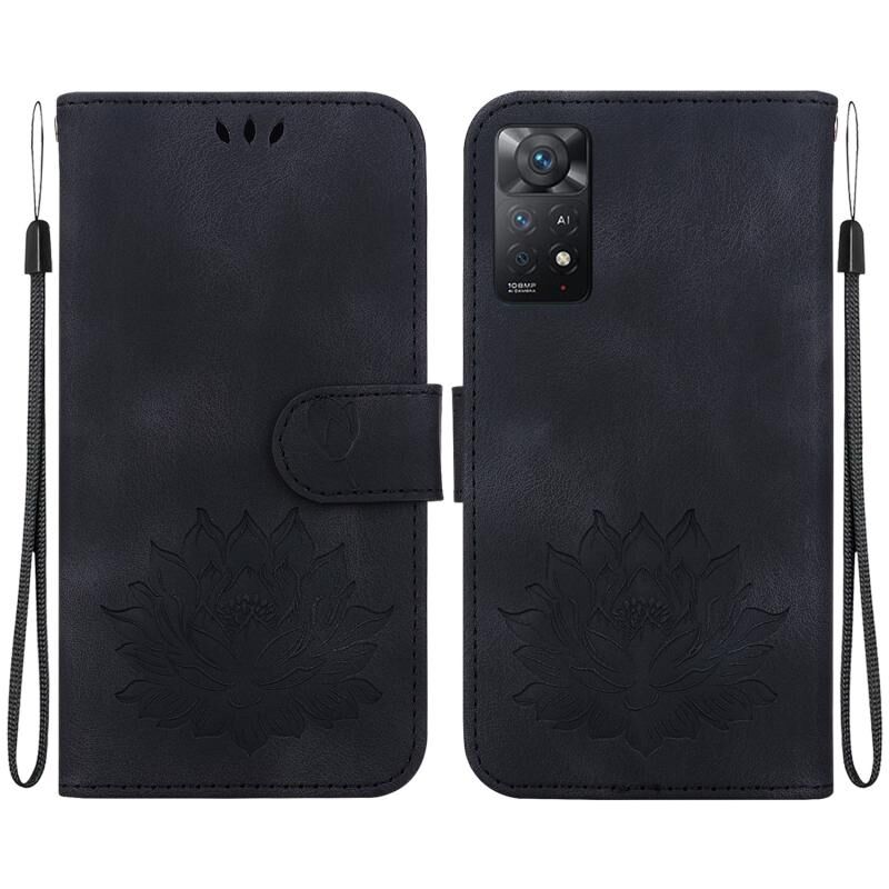 Για Redmi Note 11 Pro 4G / 5G Global Lotus ανάγλυφη δερμάτινη θήκη τηλεφώνου (μαύρο)