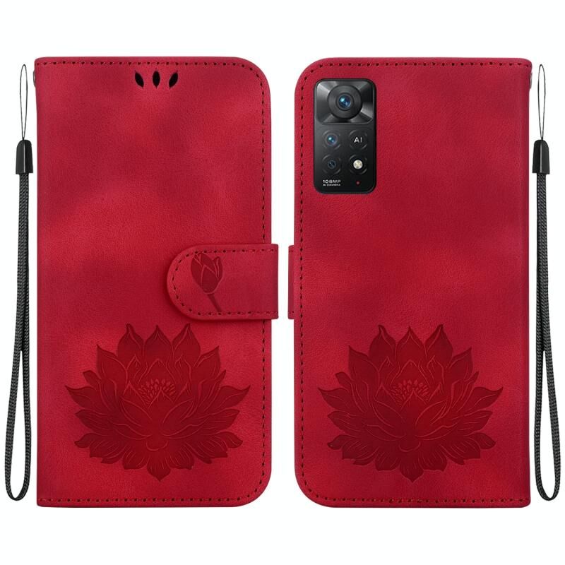 Για Redmi Note 11 Pro 4G / 5G Global Lotus ανάγλυφη δερμάτινη θήκη τηλεφώνου (κόκκινο)