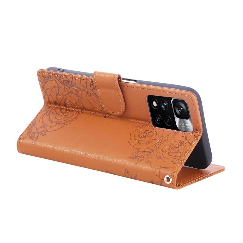 For Redmi Note 11 Pro 4G / 5G Global Rose Flower Embossed 3-Card Slots Leather Phone Case(Brown)