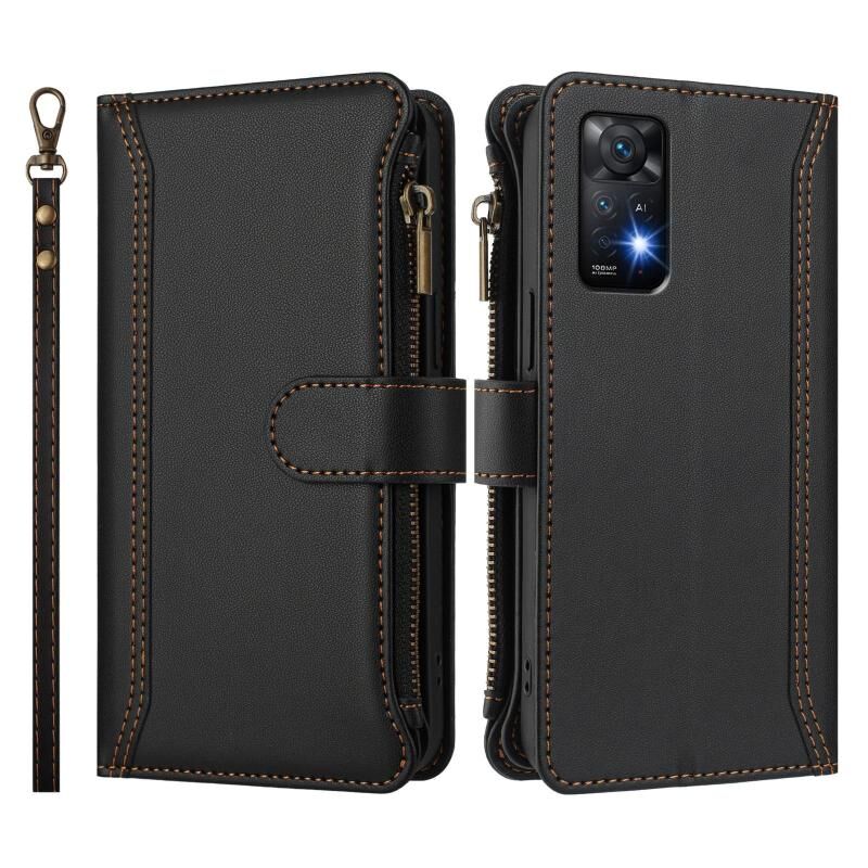 Για Redmi Note 11 Pro 4G / 5G Μαγνητικό Κλείσιμο 9 Θήκες Κάρτας Δερμάτινη Θήκη με Φερμουάρ και Λουρί Χεριού (Σκούρο Μπλε)