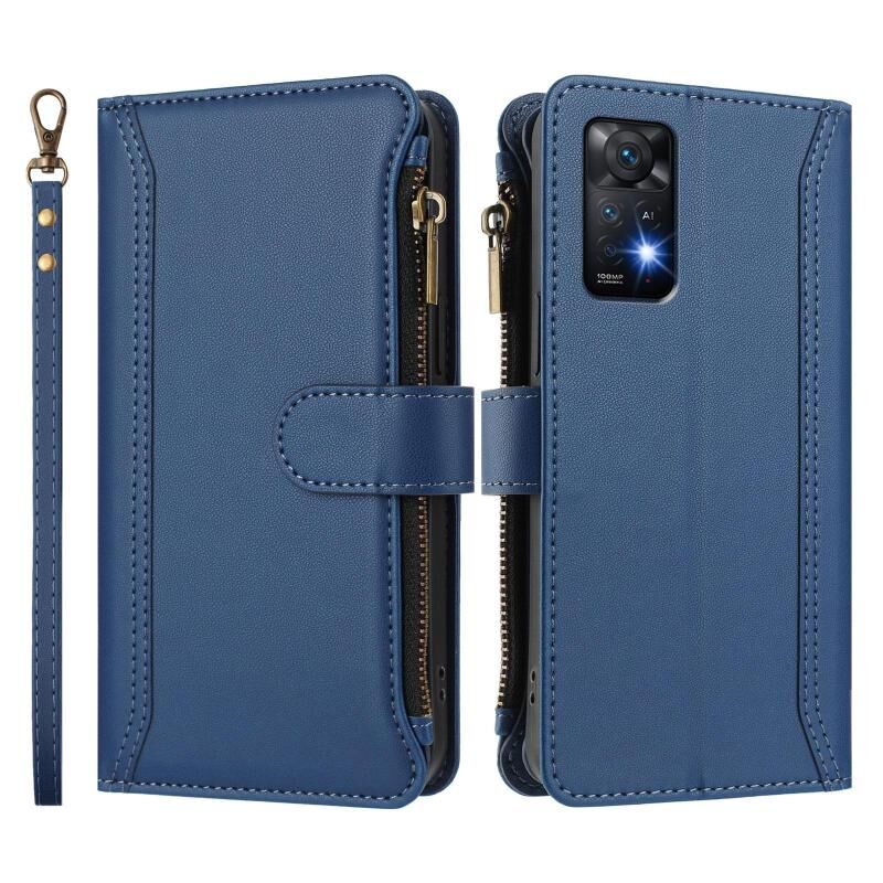 Για Redmi Note 11 Pro 4G / 5G Μαγνητικό Κλείσιμο 9 Θήκες Κάρτας Δερμάτινη Θήκη με Φερμουάρ και Λουρί Χεριού (Σκούρο Μπλε)