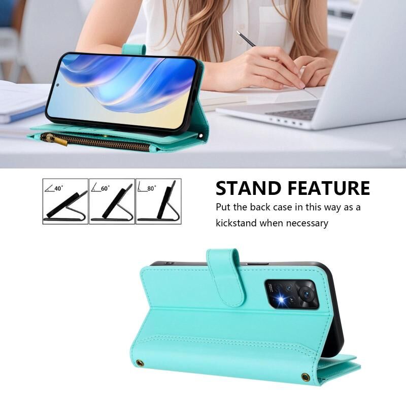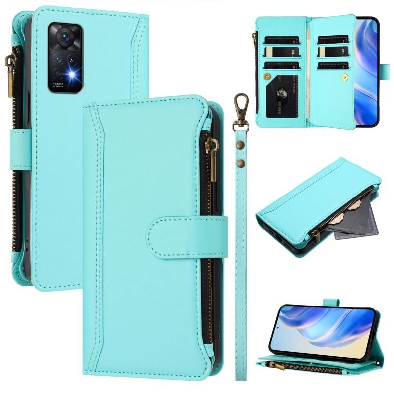 Για Redmi Note 11 Pro 4G / 5G Μαγνητικό Κλείσιμο 9 Θήκες Κάρτας Δερμάτινη Θήκη με Φερμουάρ και Λουρί Χεριού (Σκούρο Μπλε)