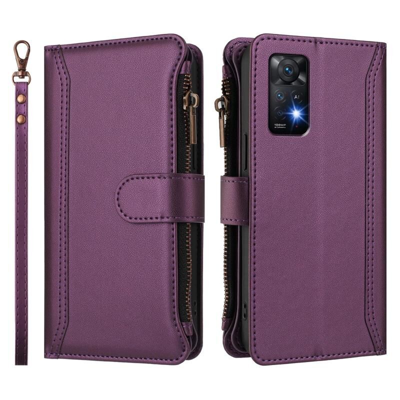 Για Redmi Note 11 Pro 4G / 5G Μαγνητικό Κλείσιμο 9 Θήκες Κάρτας Δερμάτινη Θήκη με Φερμουάρ και Λουρί Χεριού (Σκούρο Μπλε)