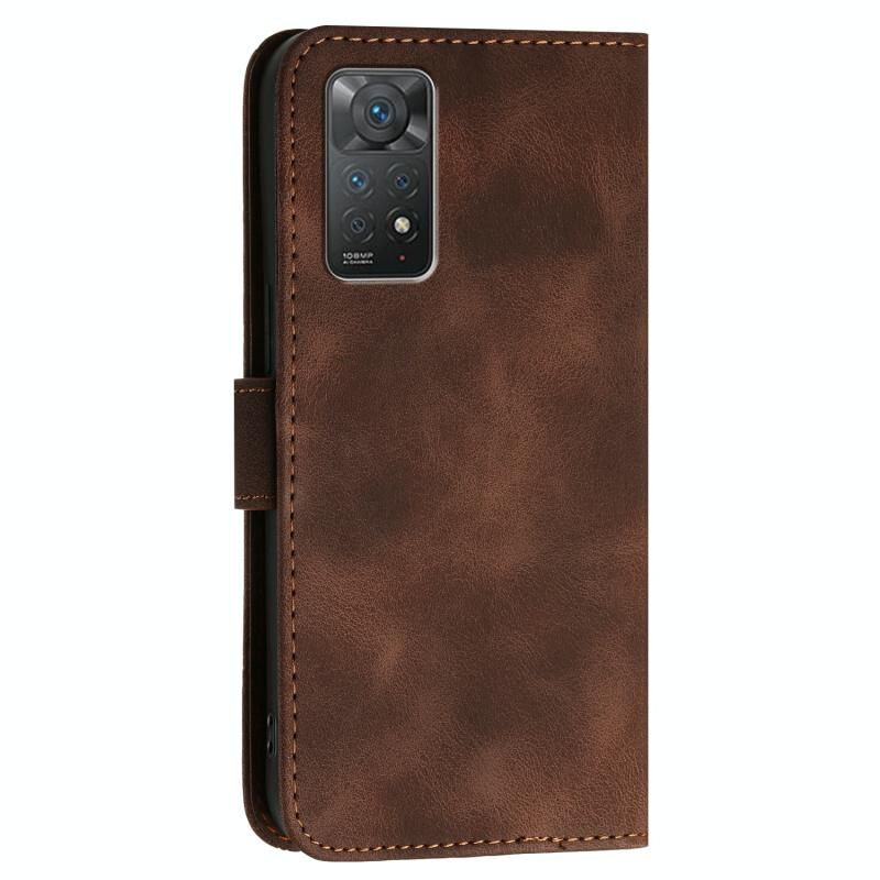 Θήκη τηλεφώνου από δέρμα με ανάγλυφο σχέδιο πλέγματος και πεταλούδας για Redmi Note 11 Pro 4G Global YX0080 με κορδόνι (Καφέ)